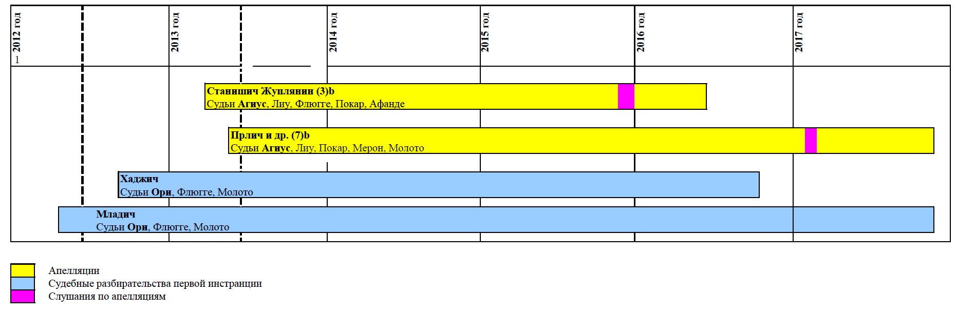 График судебных и апелляционных процессов в Международном трибунале по бывшей Югославии по состоянию на 17 мая 2016 годаª
